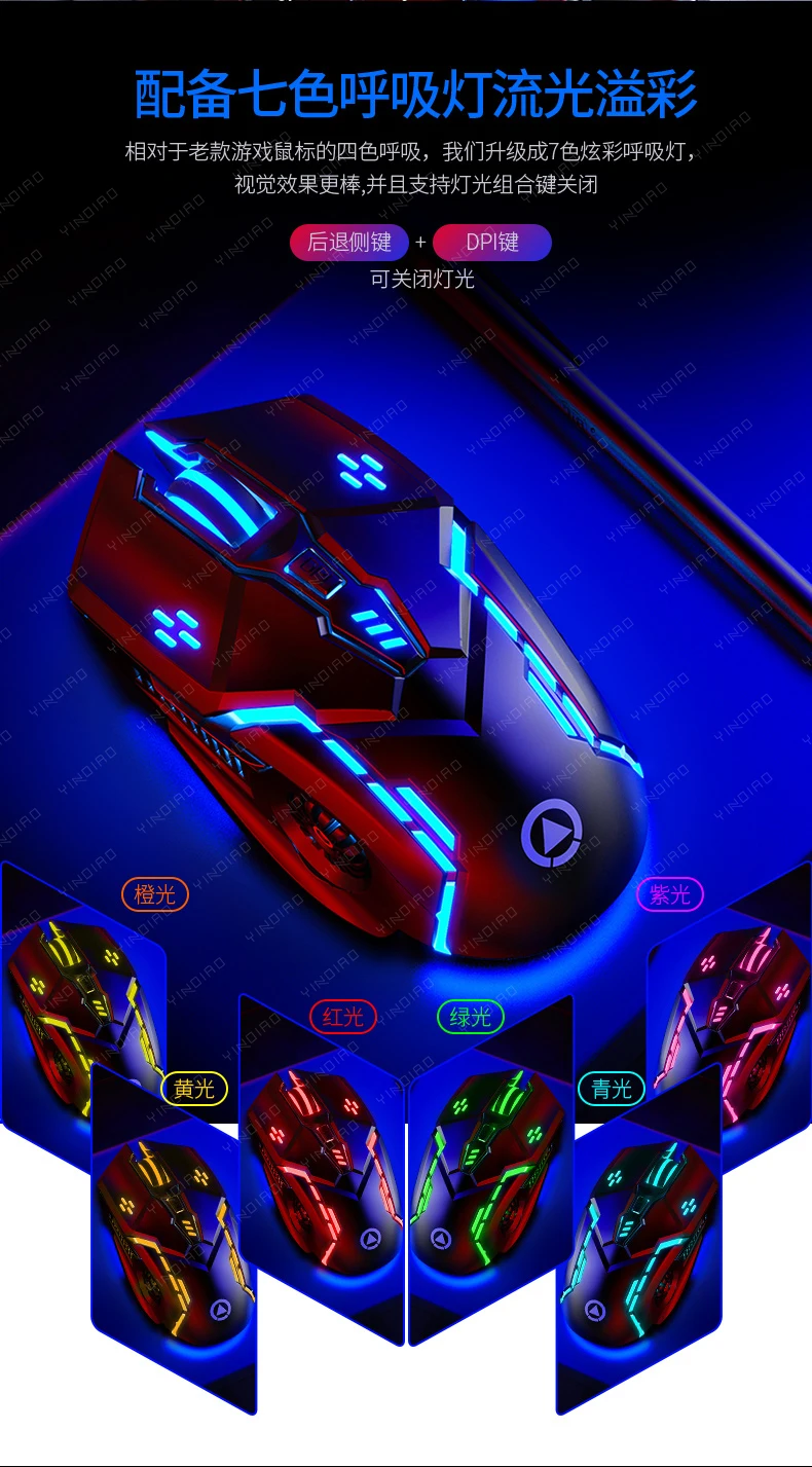Проводная USB игровая светодиодная мышь YINDIAO, 7 кнопок, 3200DPI,...