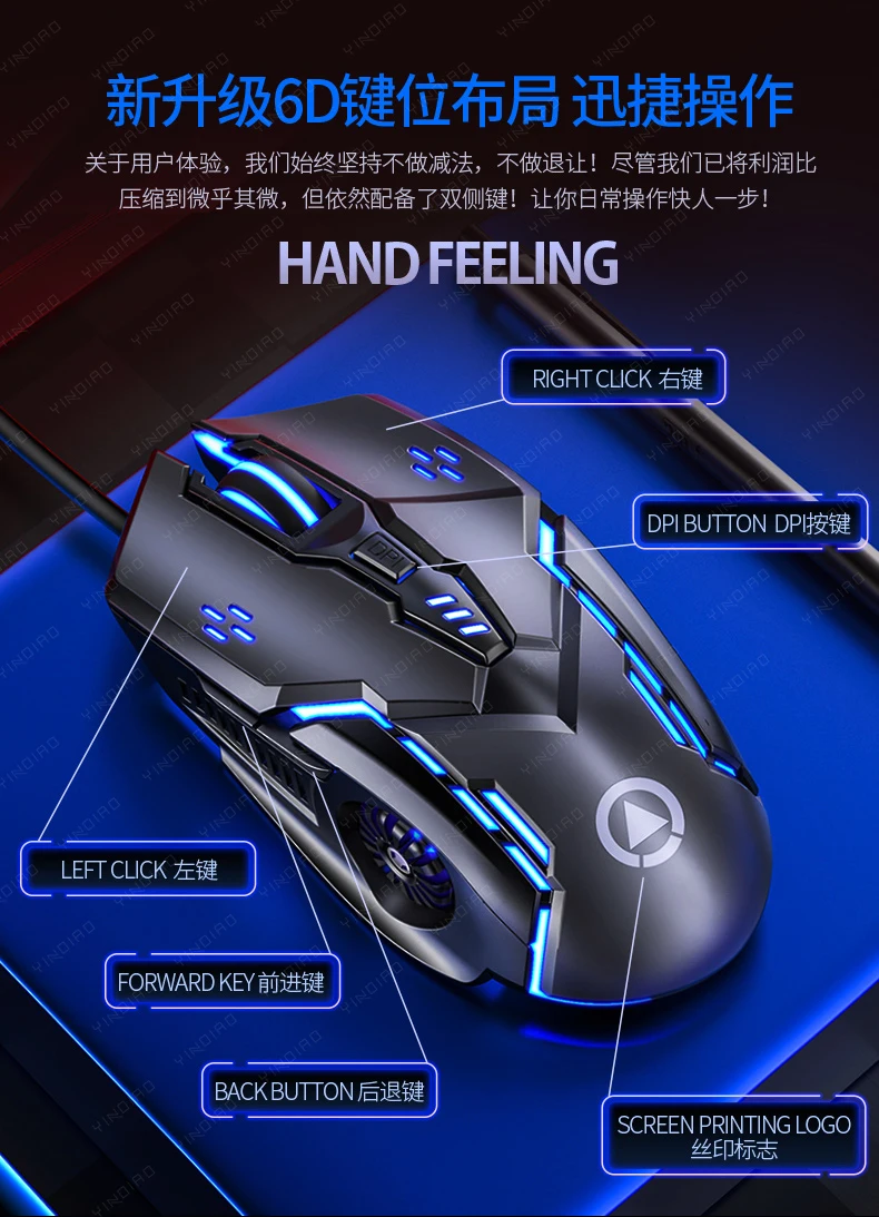 Бесшумная проводная мышь с шестью клавишами, светящаяся игра, элект...