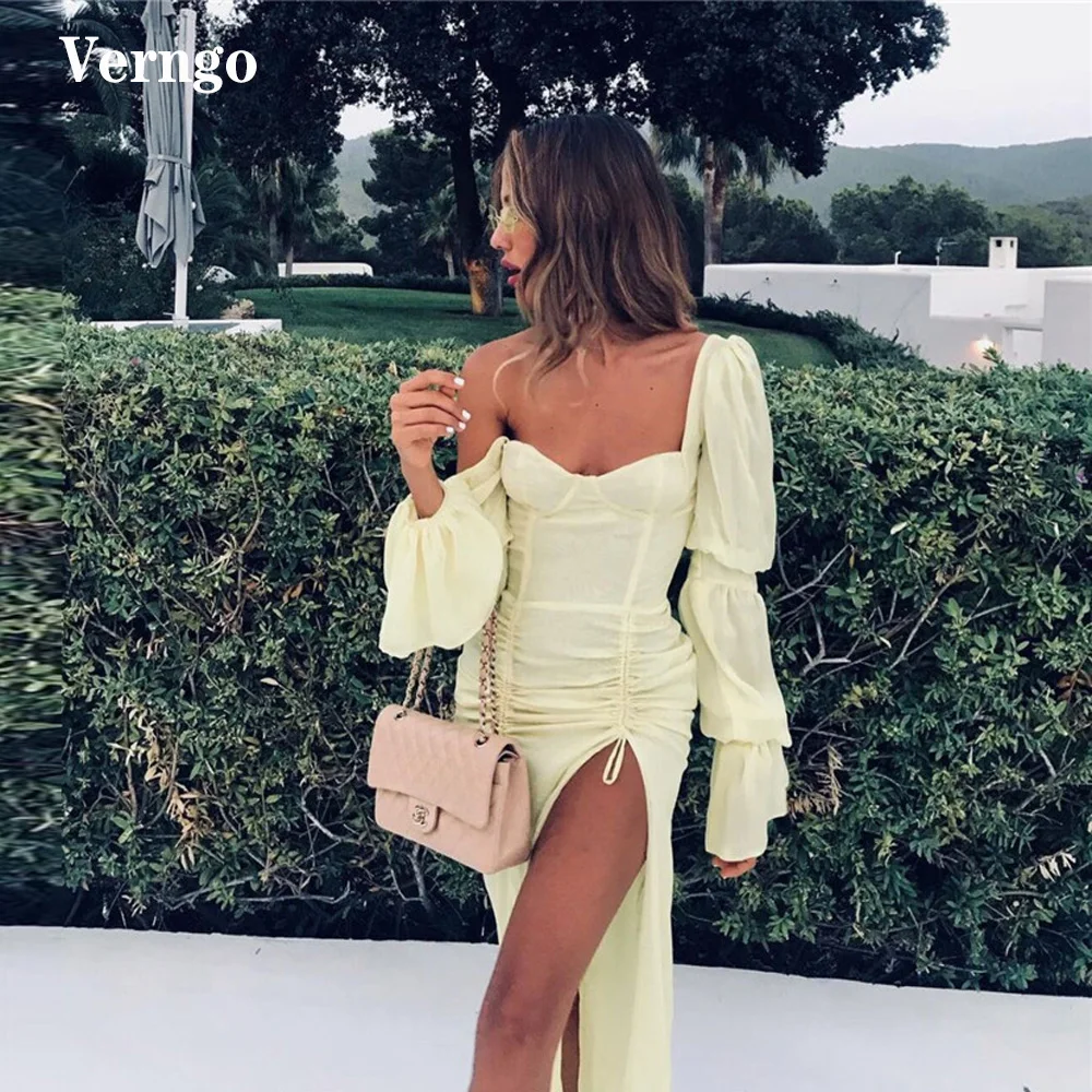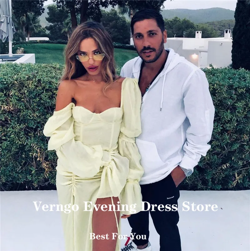 Светло-желтые светильник ние платья Verngo с длинным рукавом, сексуальные платья с высоким разрезом сбоку для выпускного вечера, наряд для торжественных случаев