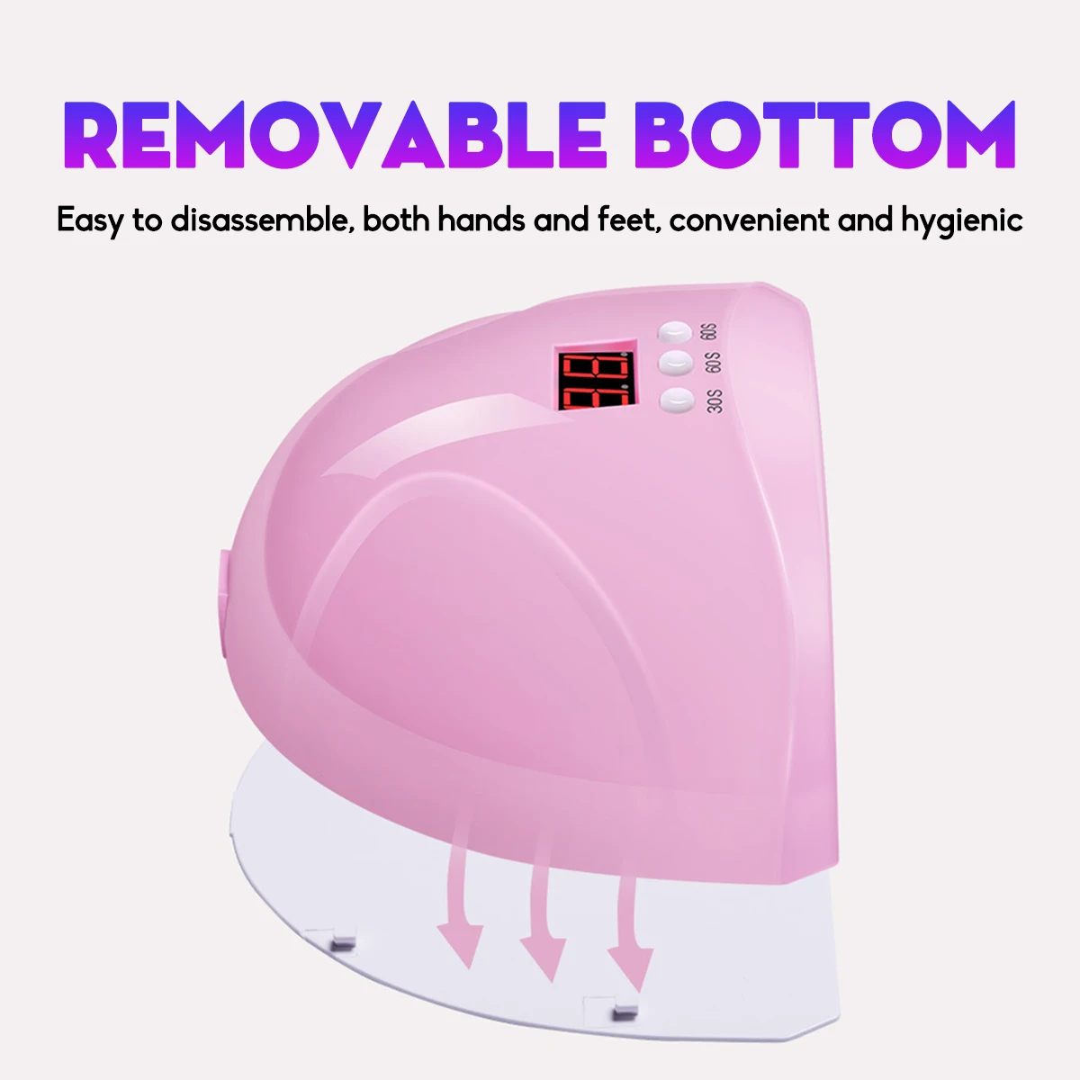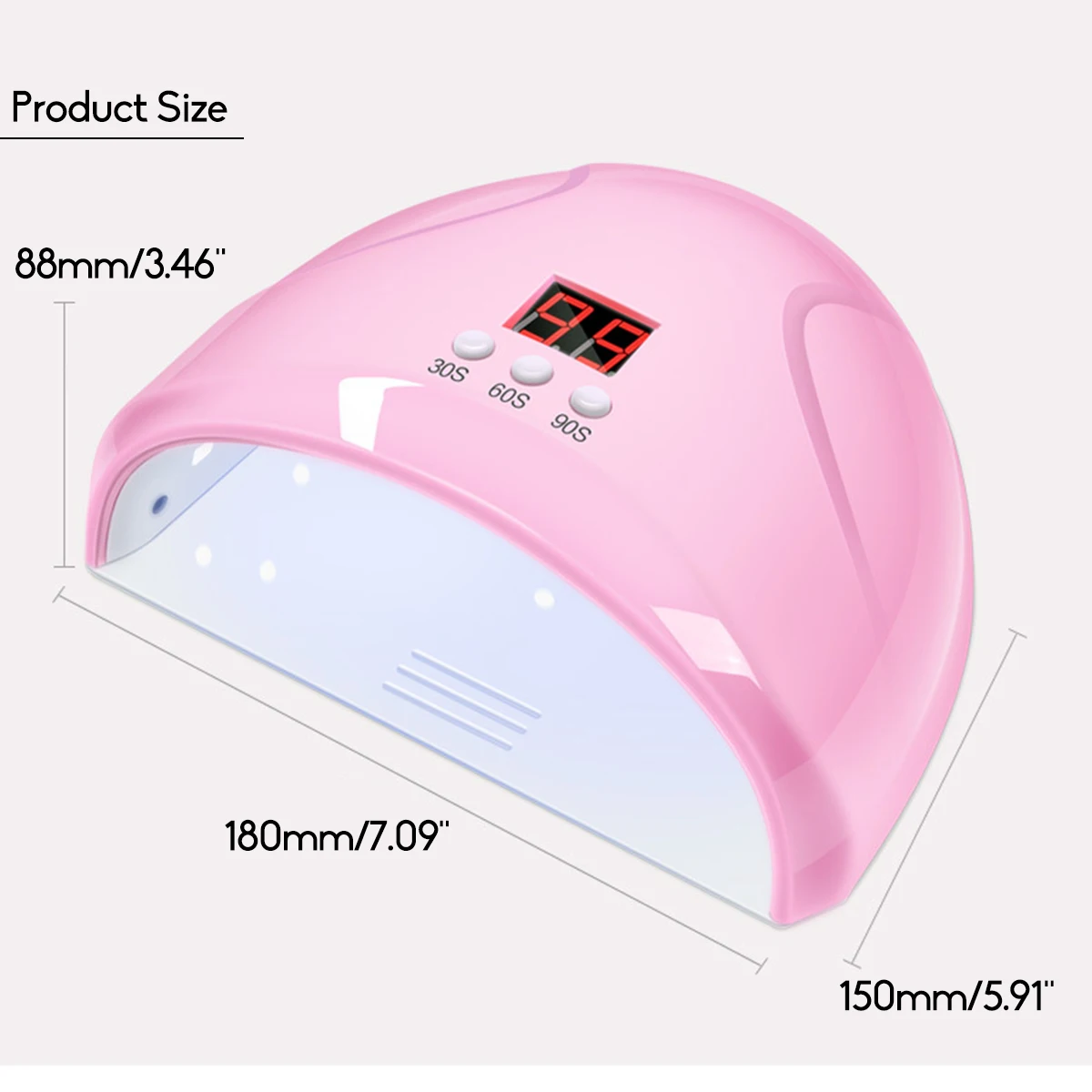 Особенности:1. У него есть функция памяти, она будет отсчитываться с момента, когда вы установите последний раз, и остановит время, когда вы вытащите руки и продолжите время, когда вы снова вставите руки.2. 3 кнопки синхронизации установлены на поверхности, 30s, 60s, 90s, вы можете установить время в зависимости от количества гель-лака, который вы наносите на ногти для идеального дизайна ногтей.3. Светодиодный светильник из 12 бусин встроен внутри, может быстро высушить гель для ногтей, не повреждая и не затемняя кожу, предоставляя вашим клиентам приятный опыт в области дизайна ногтей.4. Автоматический Инфракрасный датчик принимается, что делает его запущенным автоматически, не нажимая ни одной кнопки, вы можете включить его, поставив руки, остановить его, поставив руки.5. Большой экран, показывает вам точное время отверждения, очень удобно и просто в эксплуатации, не нужно беспокоиться о том, что ваши гели для ногтей вылечены с течением времени.