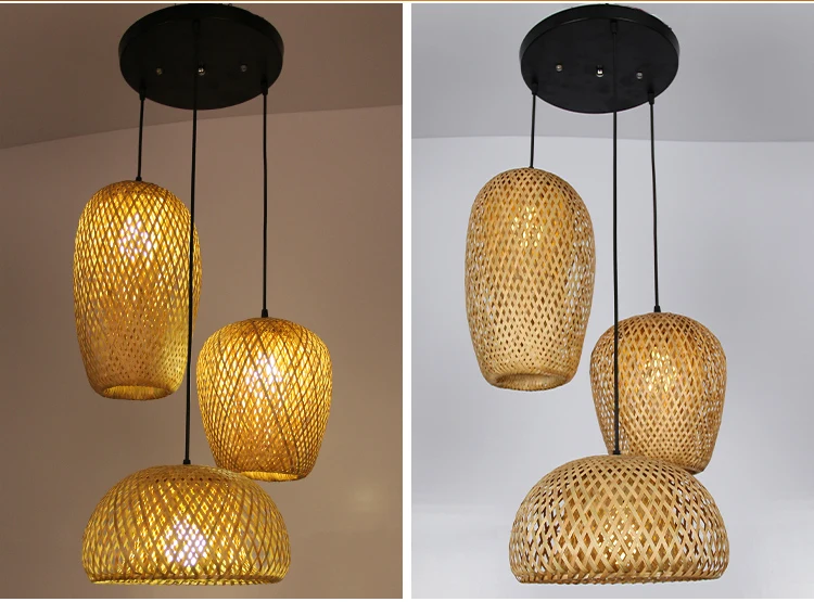 Подвесная лампа-фонарик из бамбука, плетеные люстры из натурального ротанга, лампочки ручной работы из бамбука, лампочки E27, осветительные приборы, 110 В, 220 В