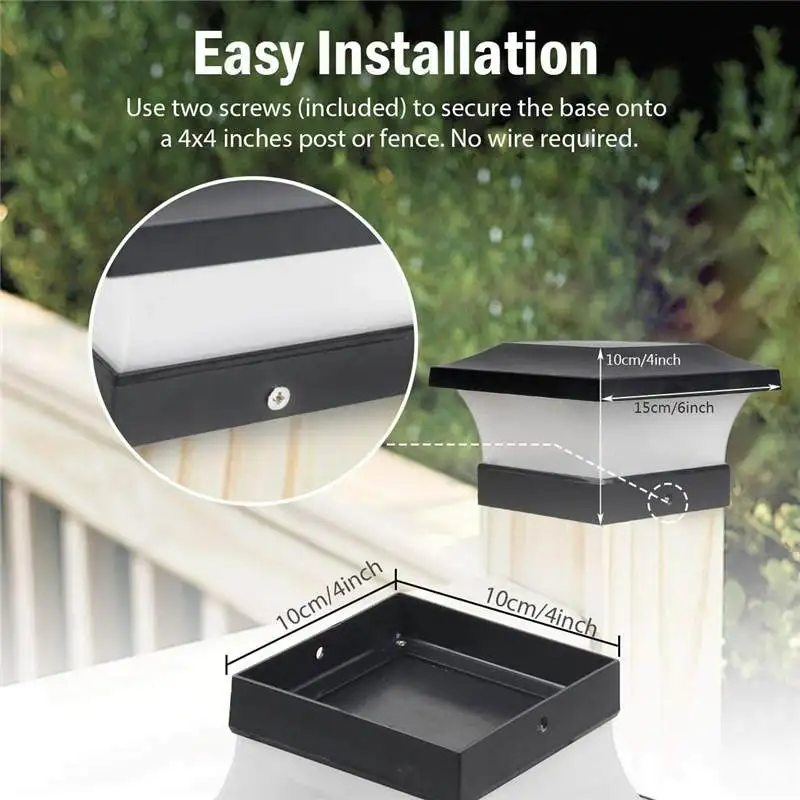 Особенности:-Светильник post cap изготовлен из технологии IP68, что делает его водонепроницаемым. Прочная, устойчивая к атмосферным воздействиям и термостойкая пластиковая конструкция.-Освещение крышки столба на солнечных батареях предназначено для установки на столбе забора или перила. Получите беспроблемное освещение без проводки. Классический стиль делает их декоративным украшением для вашего дома во время освещения для безопасности.-Ночное освещение и декоративная атмосфера. Ландшафтные светильники для различных видов активного отдыха: садов, террас, бассейнов, подъездных дорожек, барбекю, кемпинга, вечеринок, свадеб, вечеринок, фестивалей, Хэллоуина, Рождества и т. д.