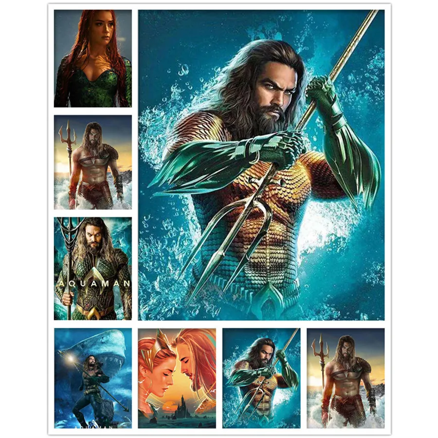 5D сделай сам, полноразмернаякруглая алмазная живопись, постер фильма Аквамен, 3D вышивка крестиком стразы, мозаика, домашний декор