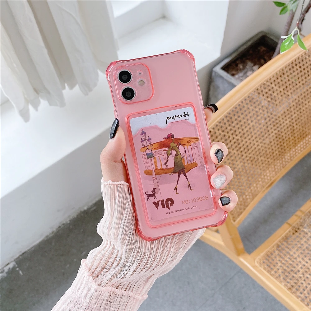 Model 6For iPhone 12Mini Pro Max Transparent Shockproof Case with Card Holder