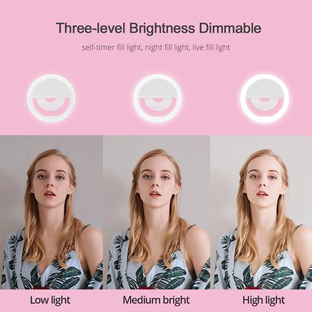 Светодиодное кольцо для селфи с светильник Новинка макияж светильник ы Светодиодная лампа для селфи мобильные телефоны фото ночной светильник Зеркало Led неоновая вывеска для организаций и магазинов селфи RingDescription:1. Продукт: три яркости Регулируемый Диммируемый кольцевой светильник2. Режим питания: модель зарядки, оснащенная usb-кабелем для зарядки, без ограничения спецификации. Аккумулятор не нужен.3. Преимущество: Легкий и компактный, портативный4. Применимые электронные продукты: мобильные телефоны, компьютеры, планшетыСпецификация:1. Светильник: белый2. Цветовая температура: 6000K3. Мощность: 3 Вт4. Материал: пластик5. Цвет корпуса: белый/розовый/синий/черный6. Напряжение: 5 В постоянного тока
