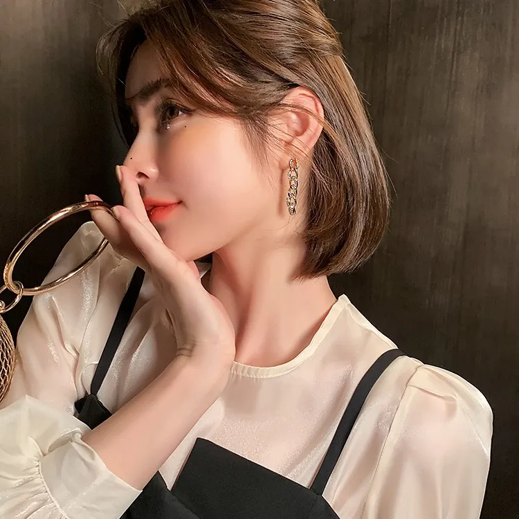 Женские Геометрические серьги, длинные висячие серьги с кристаллами, корейский стиль