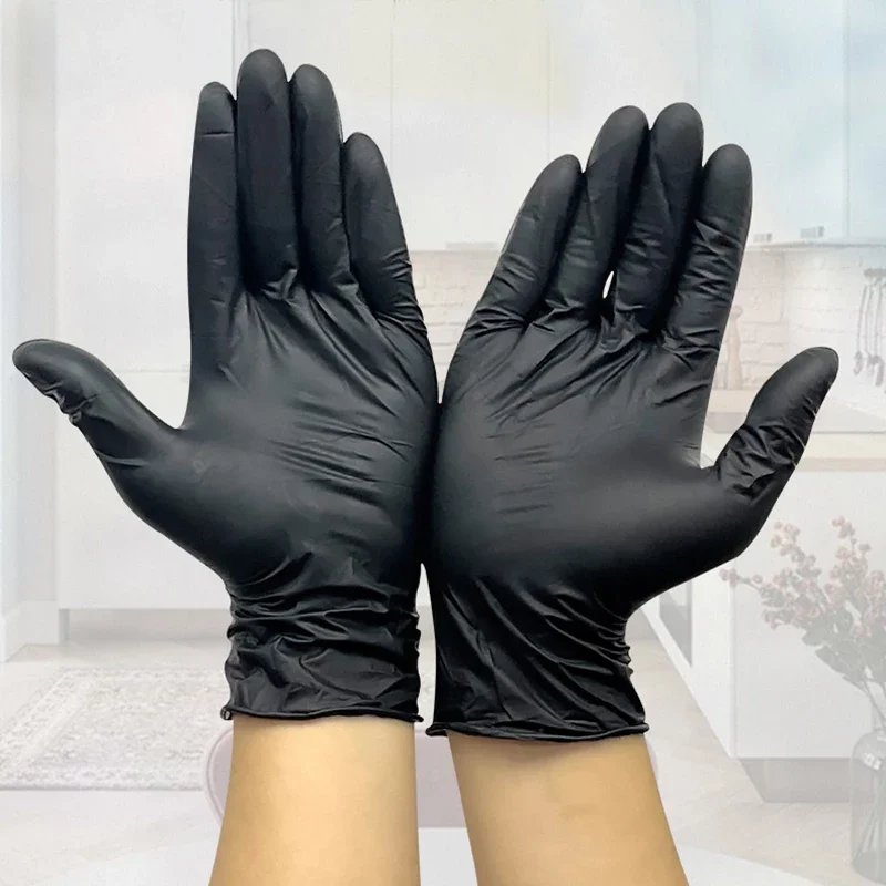Нитриловые перчатки, черные, 100 шт., водонепроницаемые, без аллергии, одноразовые, рабочие, безопасные перчатки, бытовые, механические, для уборки кухни