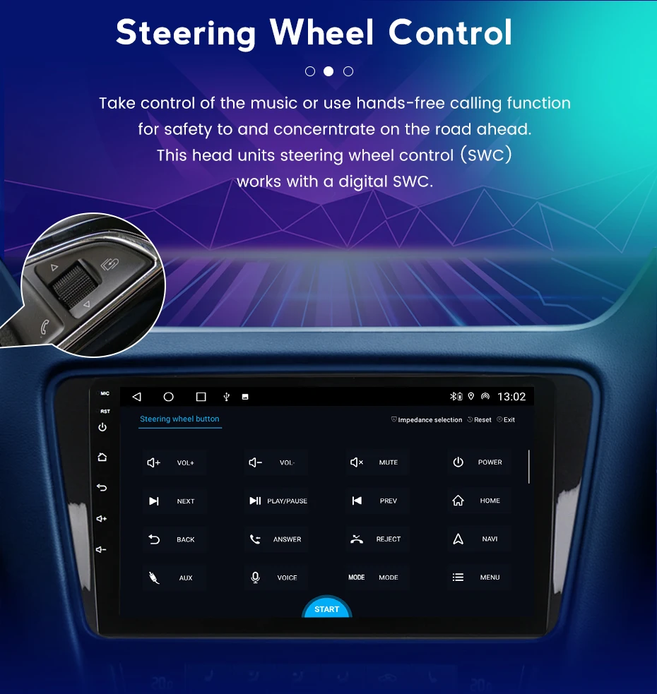 Управляйте музыкой или используйте функцию громкой связи для безопасности и увязывания на дороге вперед. Этот Головной блок управления рулевым колесом (SWC) работает с цифровым SWC.