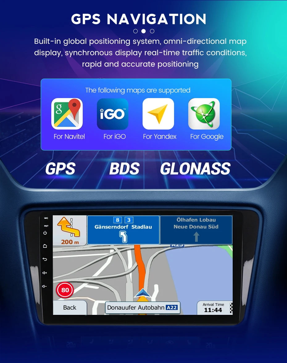 Встроенная Глобальная система позиционирования, всенаправленный дисплей карты, синхронный дисплей в режиме реального времени, режим трафика, быстрое и точное позиционирование.