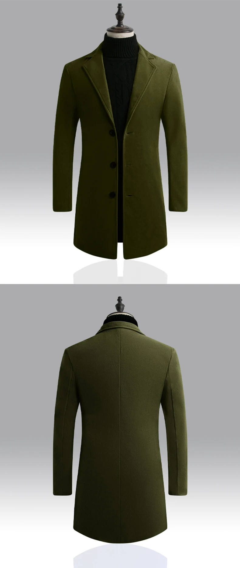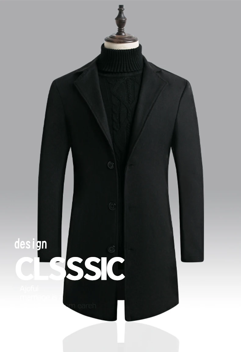 Осенне-зимнее мужское шерстяное пальто, длинное зимнее мужское шерс...