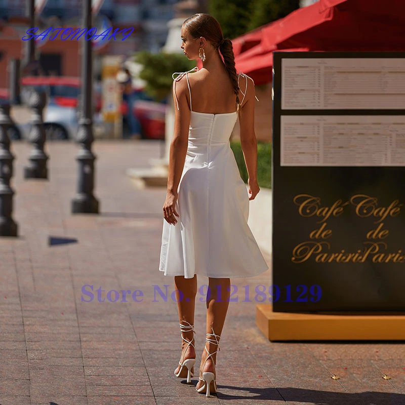 Пляжное свадебное платье цвета слоновой кости, короткое платье невесты А-силуэта в стиле бохо на тонких бретелях, 2021