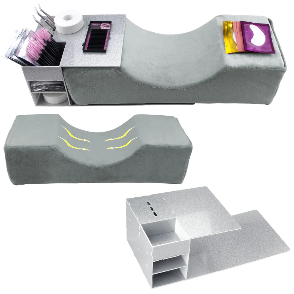 Подушка с подголовником для поддержки ресниц и шеи, подушка с эффектом памяти для наращивания ресниц с карманными инструментами для макияжа