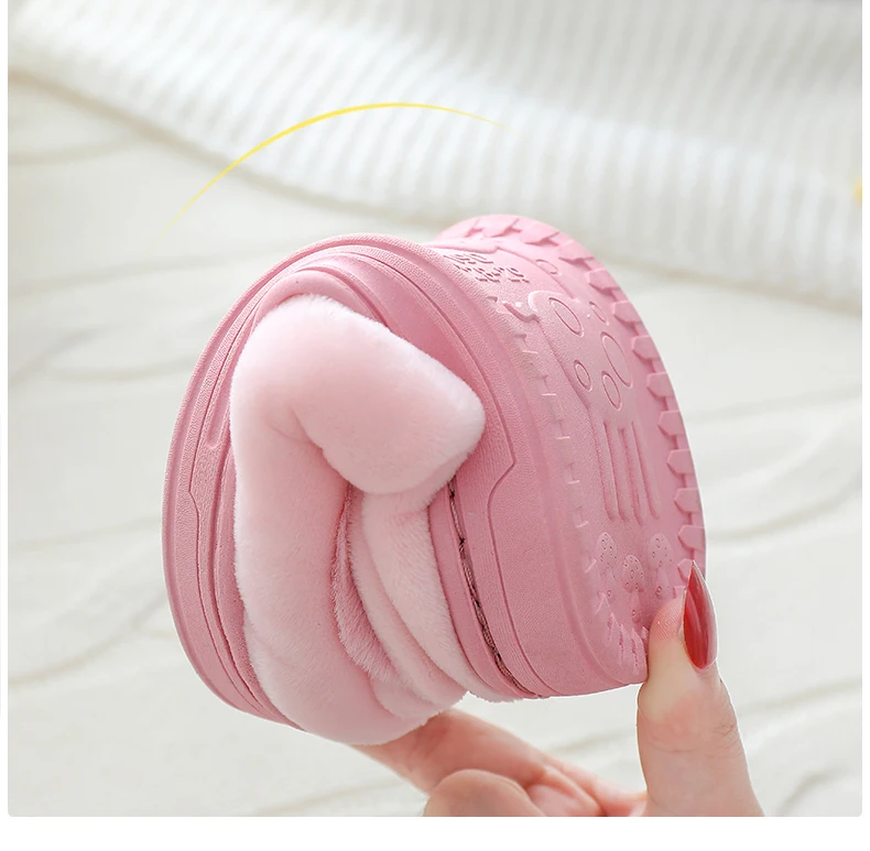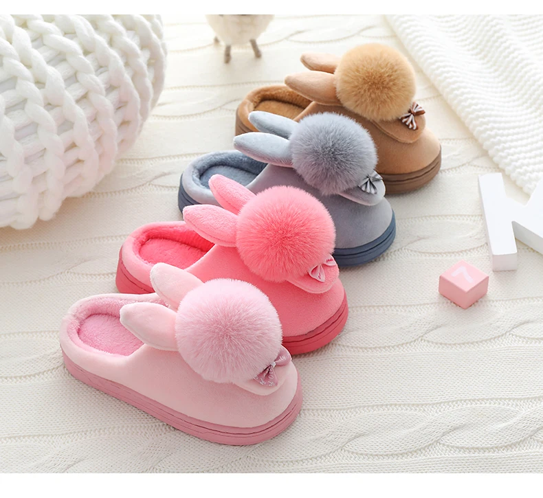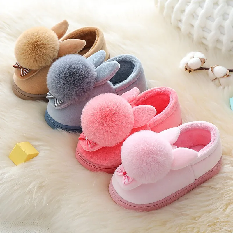Детские зимние тапочки для девочек и мальчиков, детские плюшевые домашние теплые тапочки, мультяшный кролик, хлопковые домашние тапочки принцессы с бантом