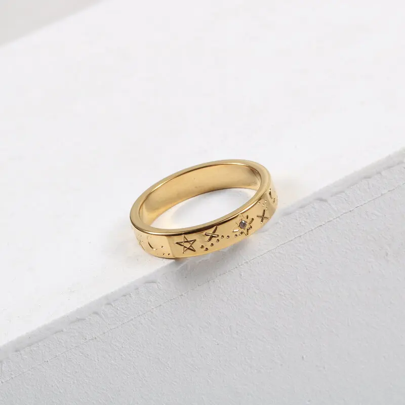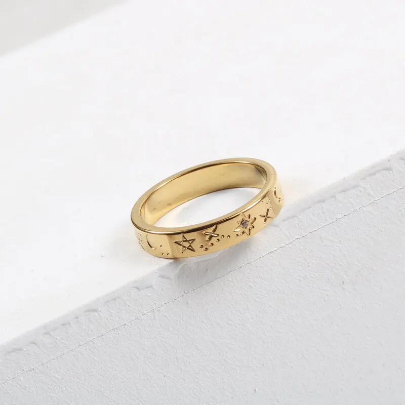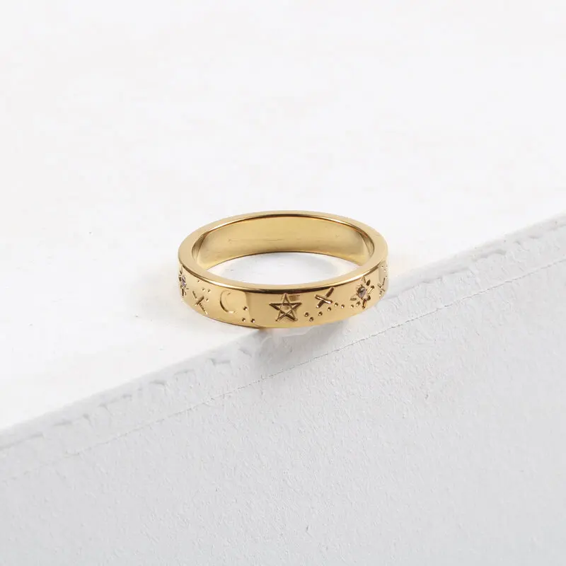 Joolim высокого класса 18K Золото PVD Резные звезды луна Вселенная кольца для женщин ювелирные изделия из нержавеющей стали оптом