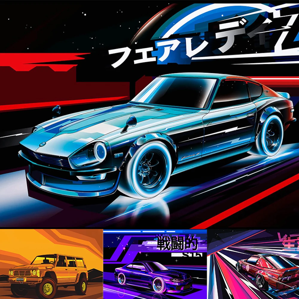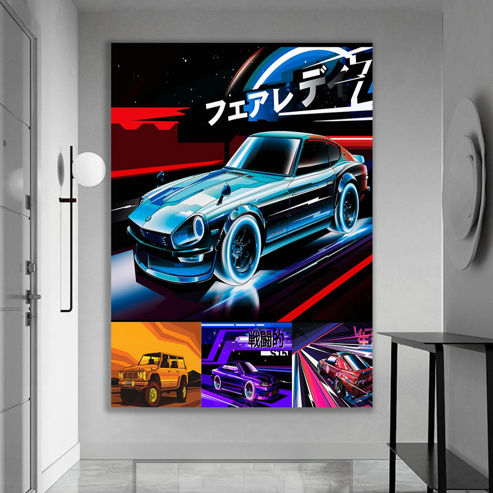 FAIRLADY Z Манга Стиль Плакат гонки, Nissan Silvia S15 Stilov постер, Skyline HAKOSUKA GT-R-1971, Настенный декор, настенное искусство