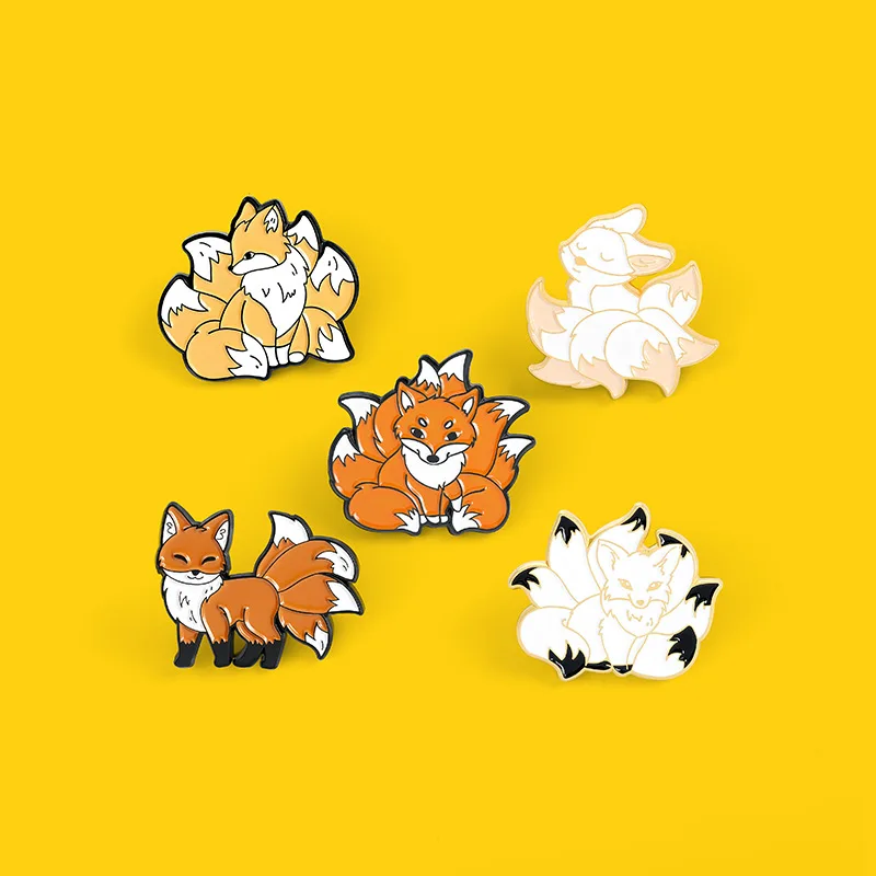 Новинка, эмалированные булавки с мультяшным изображением девять хвостовых Лис, милые животные на заказ, брошь на лацкан, значок для сумки, мультяшное ювелирное изделие, подарок для детей, друзей
