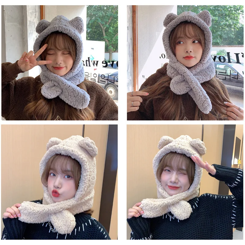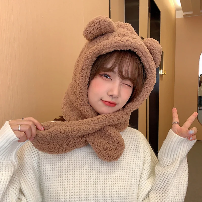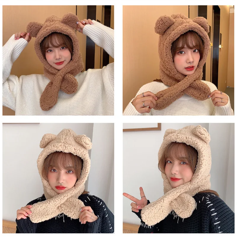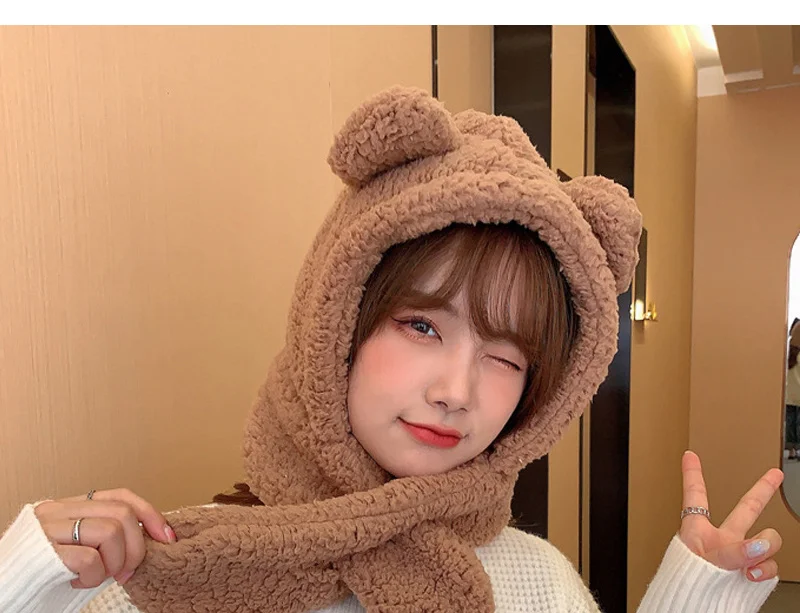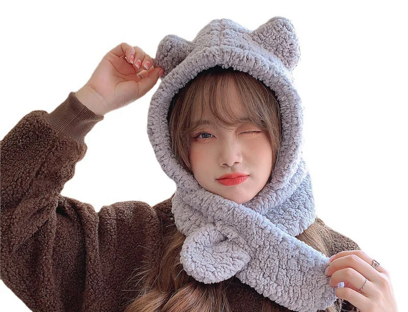 Новинка, шарфы с капюшоном с милыми медвежьими ушками, женские утеп...
