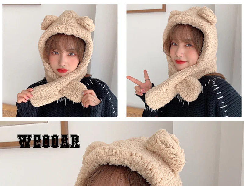 WEOOAR, милая плюшевая Женская Шапка-бини с медведем, осень 2021, в японскомКорейском стиле, Женская Роскошная шапка, женские шапки MZ222