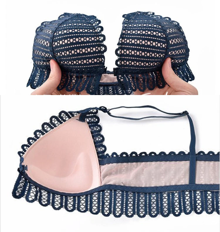 Сексуальный кружевной Беспроводной бюстгальтер с застежкой спереди ...