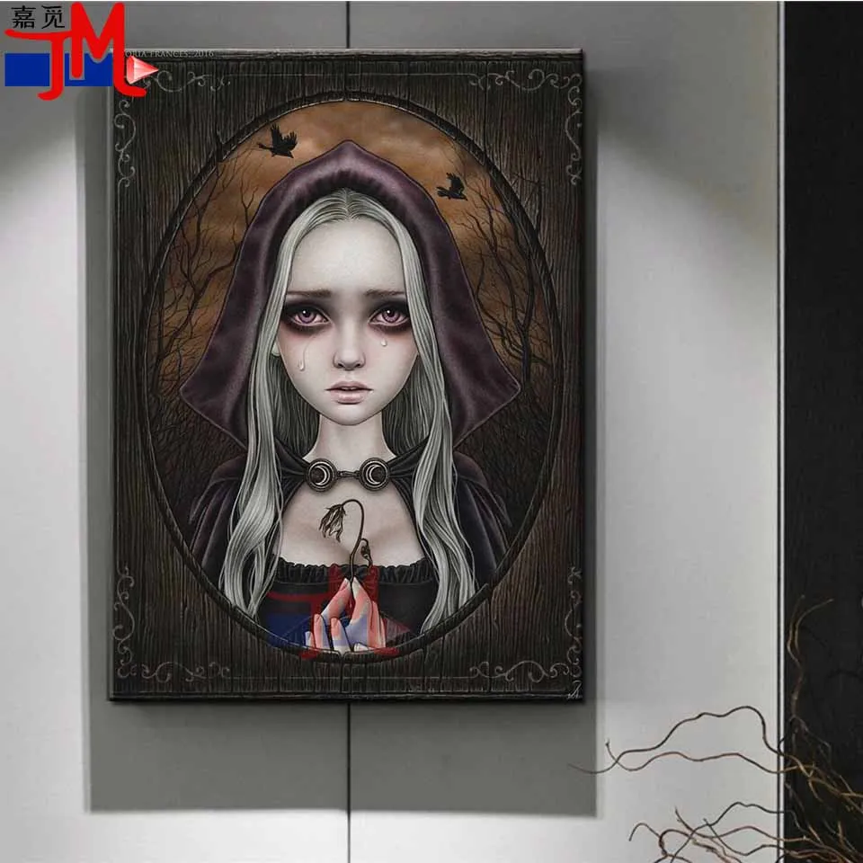 Американские картины 5d Diy Алмазная вышивка мультфильм вампир портрет роспись бриллиантами плач девушка мозаика Пейзаж Вышивка крестом