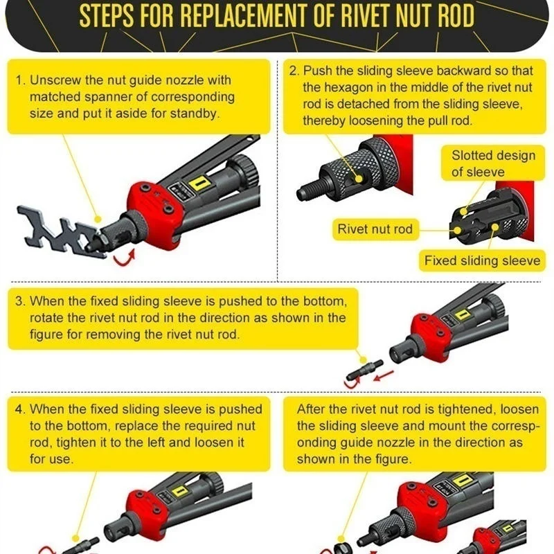 Стиль 2: пистолет с заклепками, запасная часть 7 шт. (M3/M4/M5/M6/M8/M10/M12), гаечный ключ-1 шт.