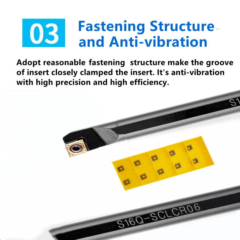 Описание товара:1. Номер модели: S08K-SCLCR/L06, S10K-SCLCR/L06, S12M-SCLCR/L06, S16Q-SCLCR/L062. Использование: внутренний токарный инструмент3. Твердость: HRC42-464. Материал: 40Cr-42CrMo5. Покрытие: TiAlN6. Обработка поверхности: закалка и Закалка7. Применимые вставки: CCMT0602 **, CCGT0602 ** для стали, нержавеющей стали, чугуна и т. д.8. Цена вставки составляет 10 шт.