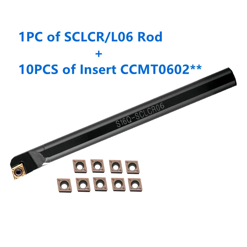1 шт. SCLCRL06 внутренний держатель токарного инструмента и 10 шт. карбидных вставок CCMT060204 токарный станок с ЧПУ набор режущих стержней
