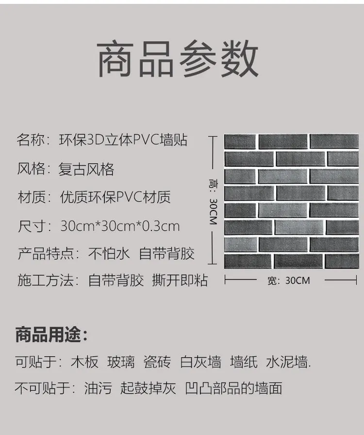 Домашний декор, 3D ПВХ настенные наклейки, настенная бумага, кирпич...