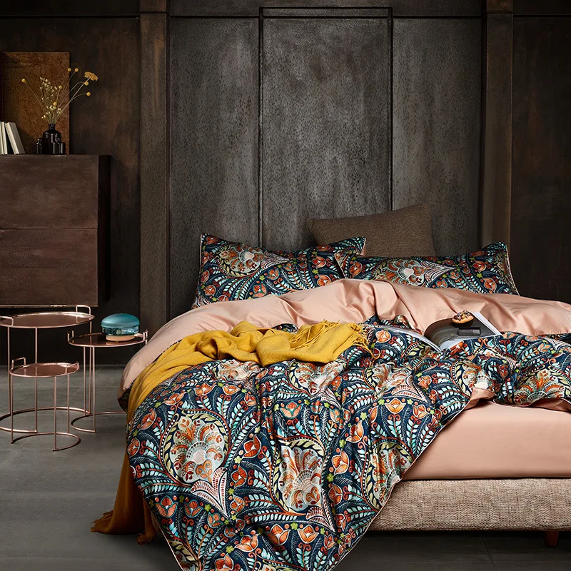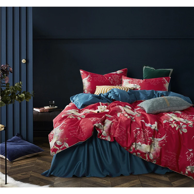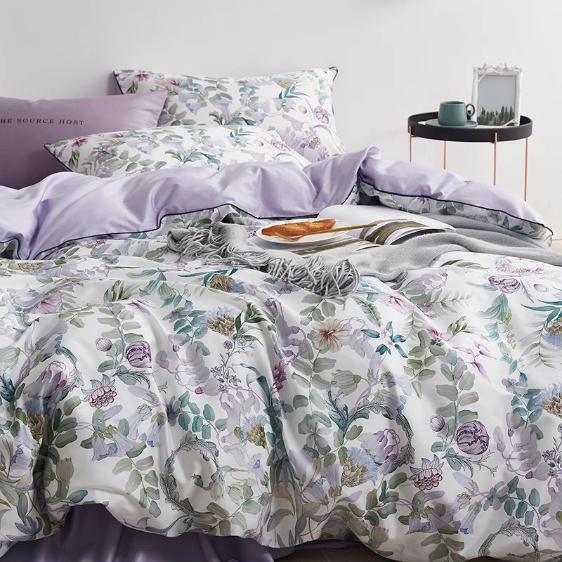 Комплект постельного белья из 4 предметов, Египетский хлопок с принтом растений, шелковистый мягкий пододеяльник, Королевский размер США, 200x230 см, подстилка