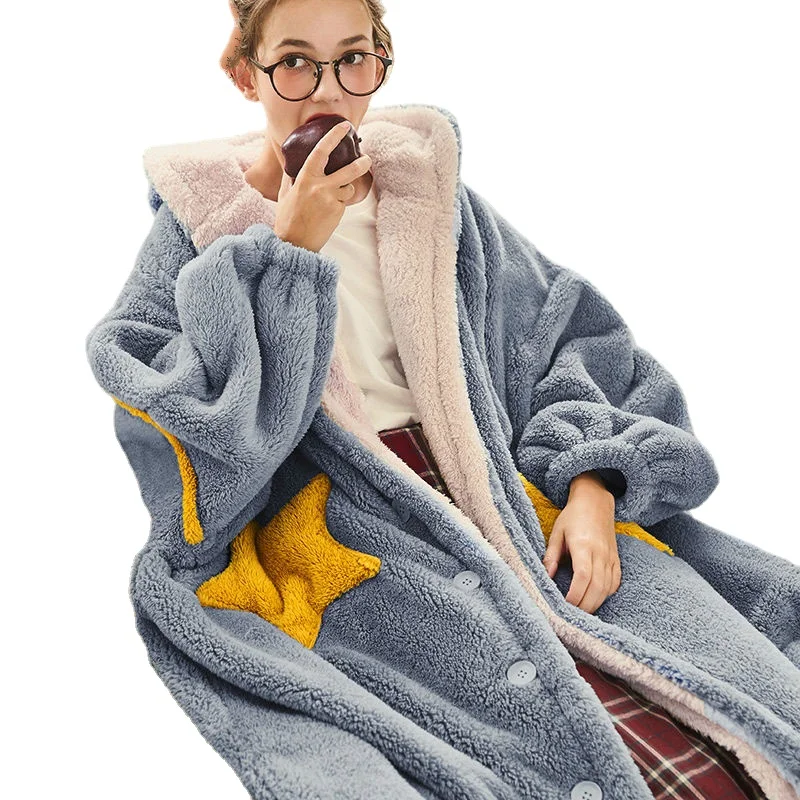 Женские халаты из кораллового бархата, женская теплая плотная Пижам...