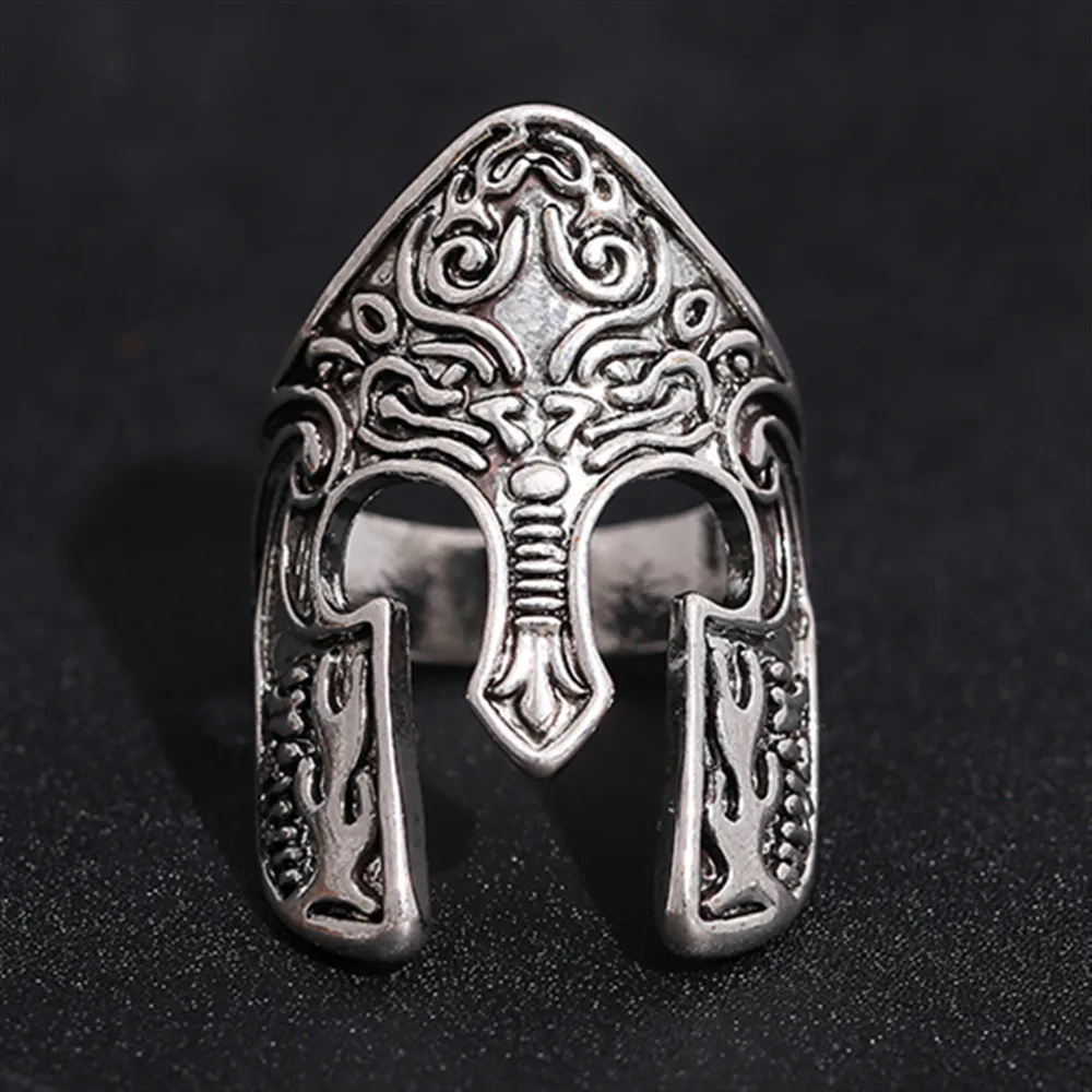 Мужской скандинавский языческий амулет, мужской тотем, воин викингов, кольцо шлем, Скандинавская Руна, спартанская маска, кольцо шлем s, ювелирные изделия