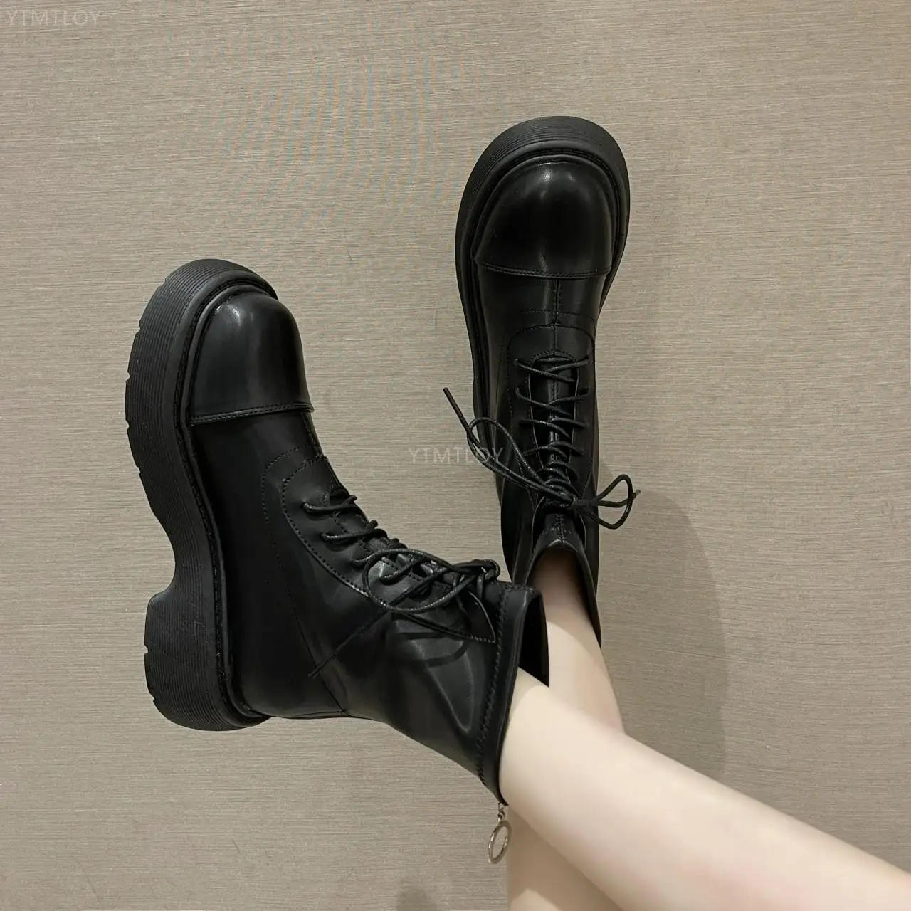 Женские Теплые ботильоны на меху, мотоциклетные ботинки бежевого и черного цвета на платформе, для осени и зимы, 2022