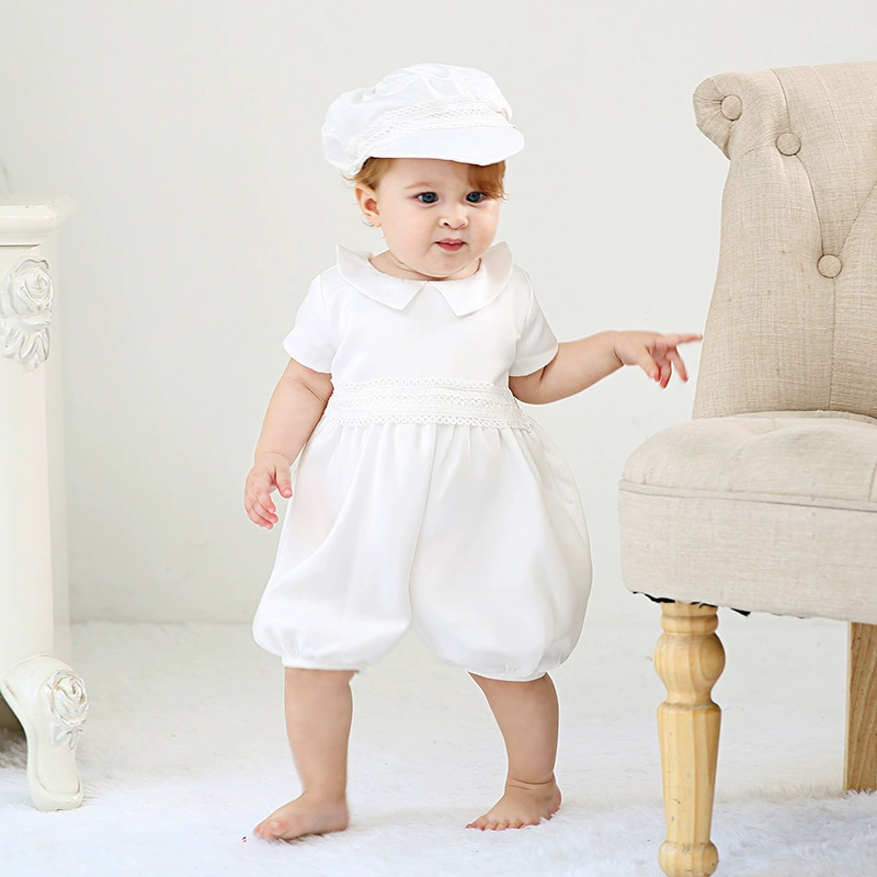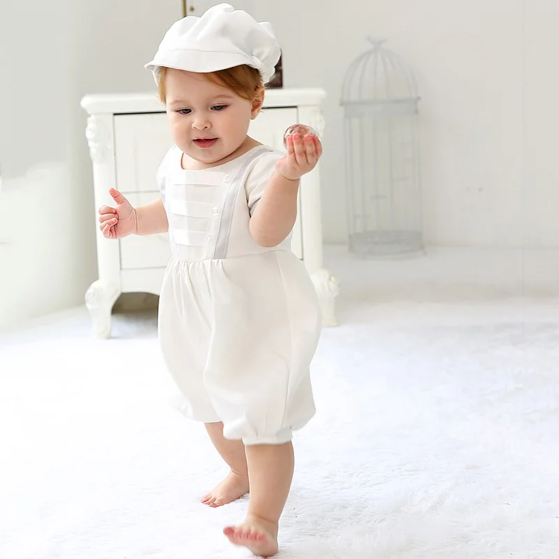 Новый детский костюм для мальчиков для дня рождения, комбинезон + шляпа, официальные джентльменские костюмы, костюм для мальчика для крещения