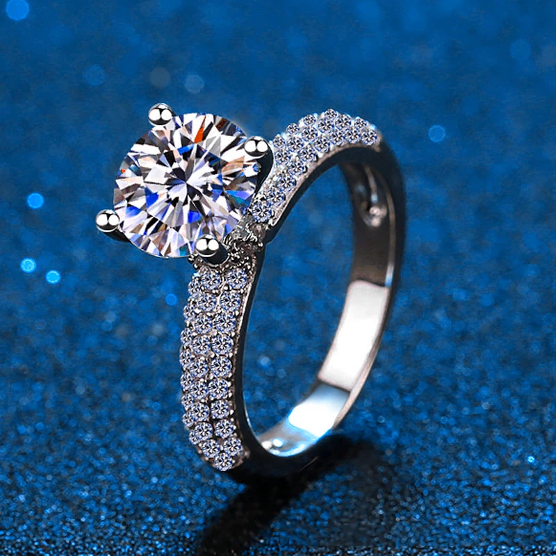 Настоящий муассанит обручальное кольцо с проложить группа 2ct 925 из стерлингового серебра с фон мечта о свадебном торжестве у кольца для женщин Свадебные украшения