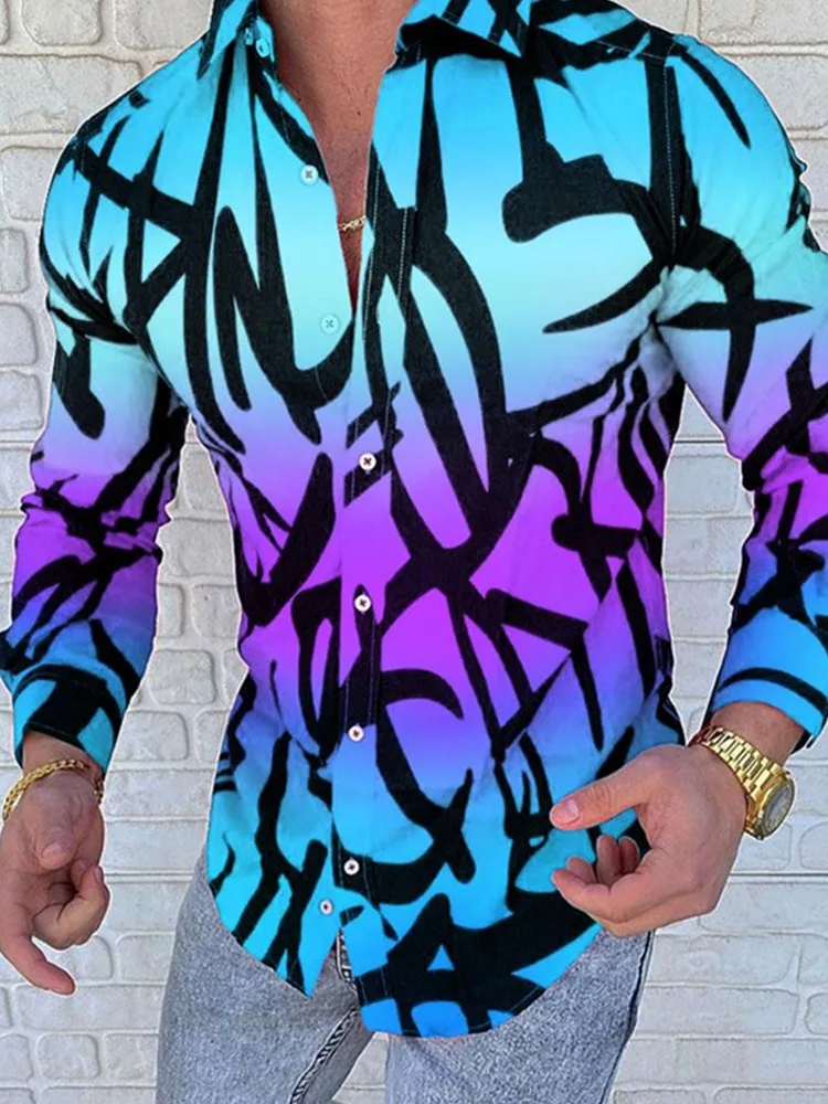 Мужская однобортная рубашка с длинным рукавом и принтом