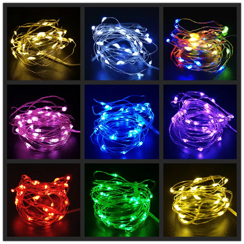 10 шт., 1 м, 2 м, 3 м, 5 м, медная проволока, светодиодные гирлянды, праздничное освещение, Сказочная гирлянда для рождественской елки, украшения для свадебной вечеринки
