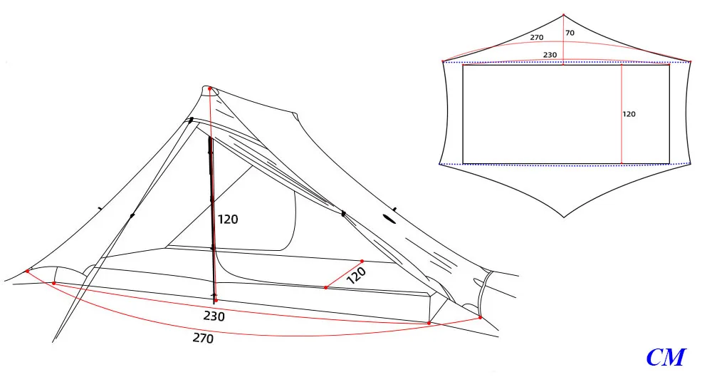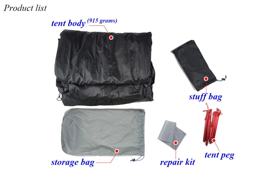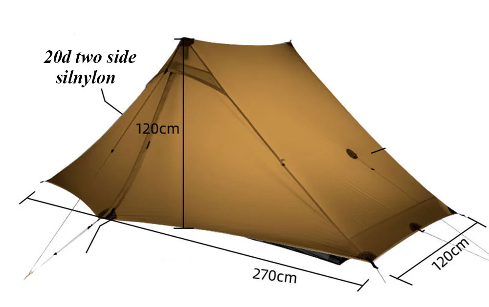 Flysheet: 20D 2 сторона Silnylon (Водонепроницаемый индекс 2000 мм )