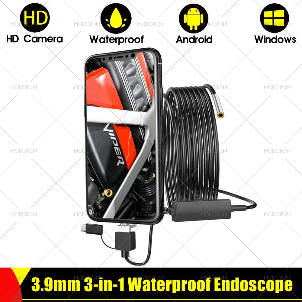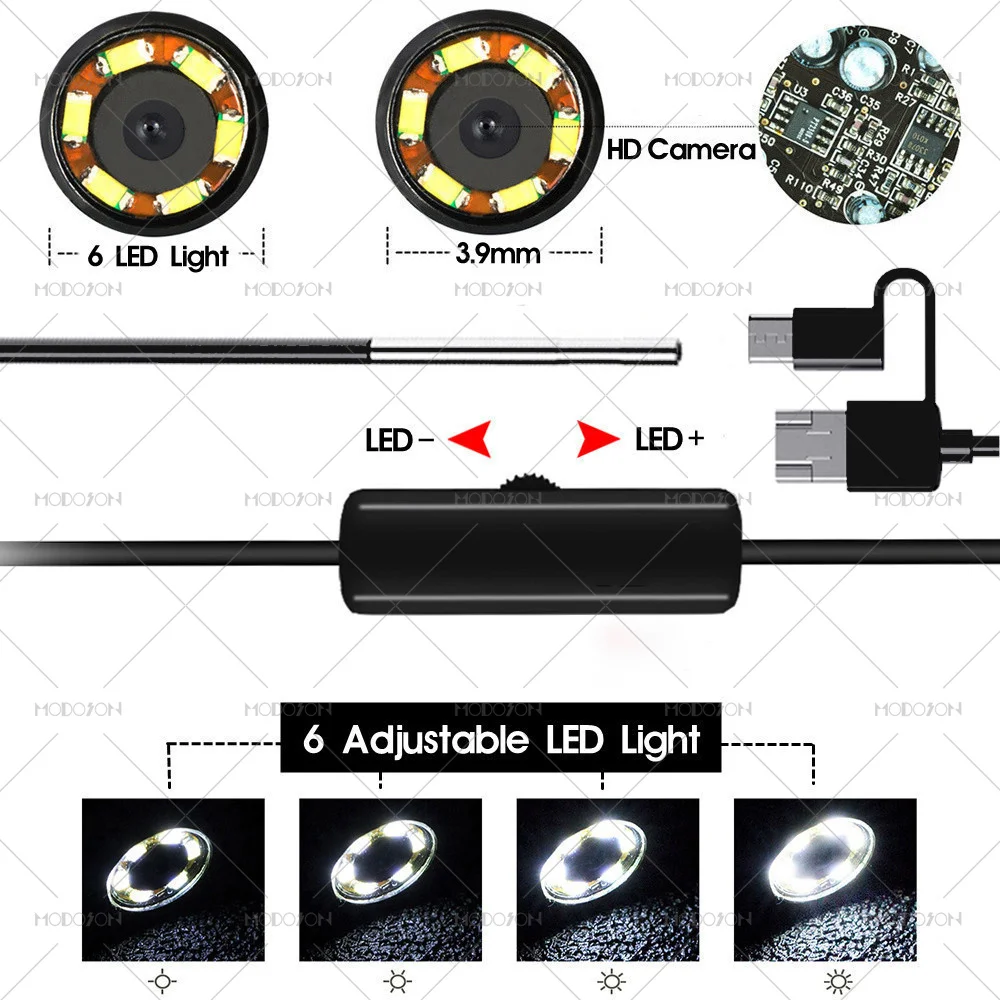 Камера-Эндоскоп HD 3,9 мм, Micro USB Type-C, OTG, гибкий кабель