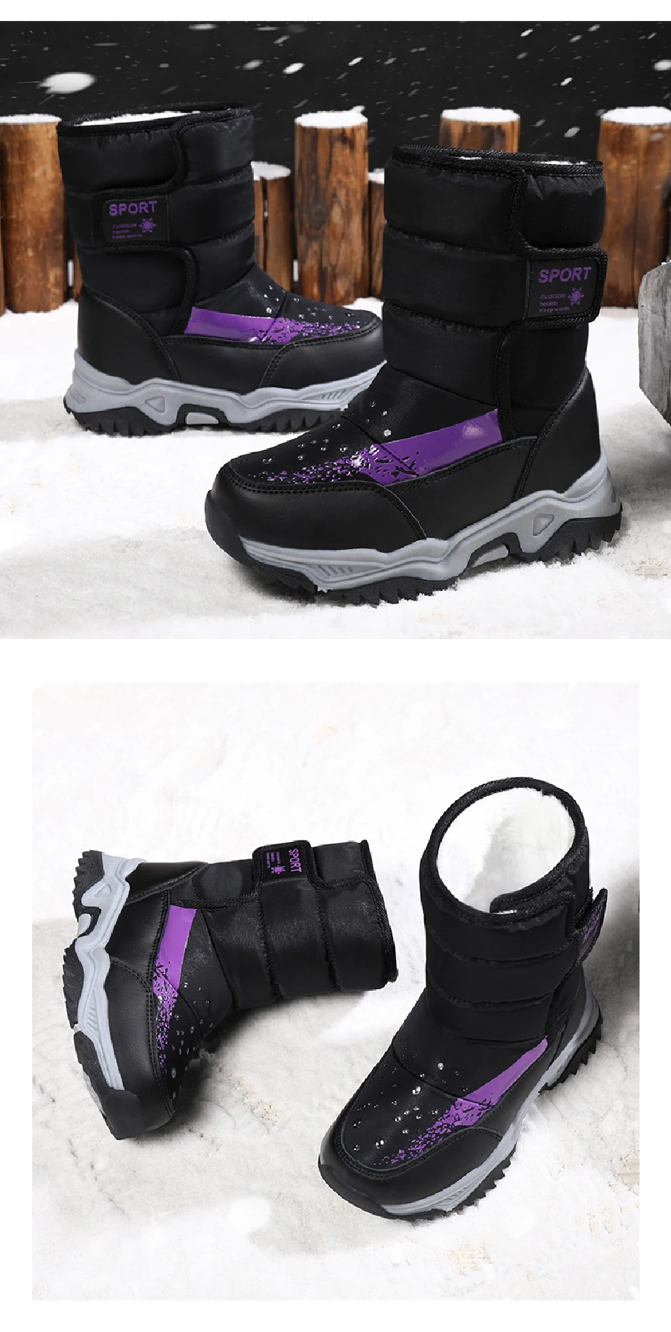 Зимние теплые меховые сапоги для детей, плюшевая Детская уличная обувь для мальчиков, нескользящая повседневная обувь в виде лап, водонепроницаемая обувь для девочек, Новинка