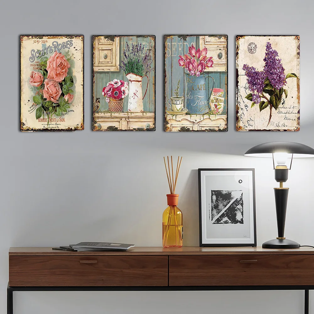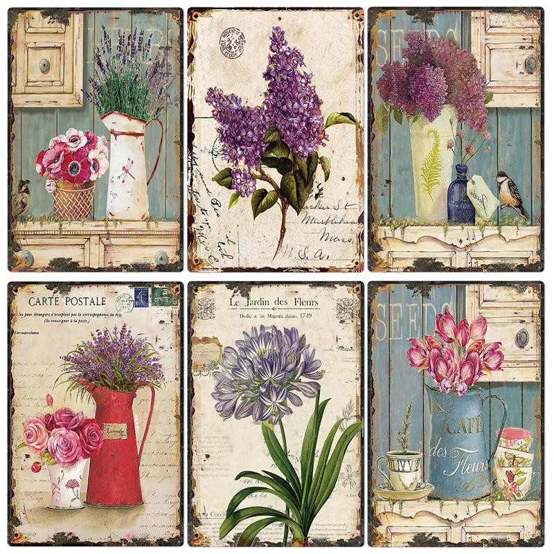 Металлическая табличка с цветами в пасторальном стиле, жестяной пла...