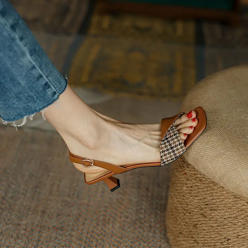 Женские босоножки с открытым носком Oraqwlj, сандалии на высоком квадратном каблуке, туфли с рисунком гусиные лапки, туфли на тонком каблуке, лето 2021