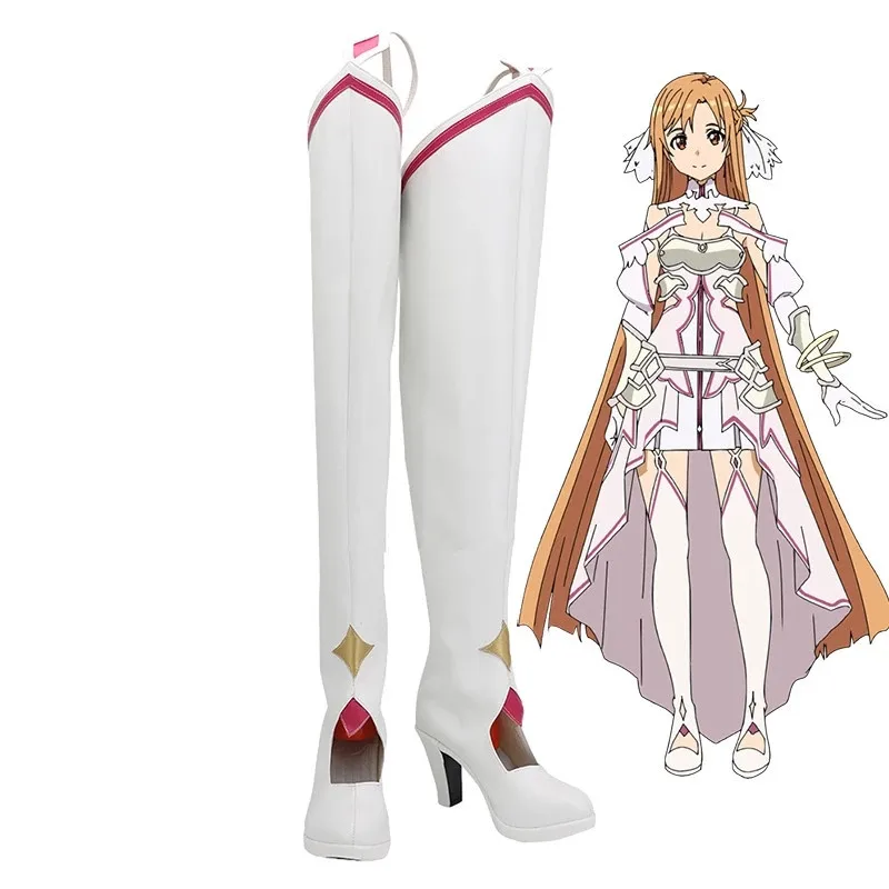 Аниме меч искусство онлайн алицинизация Сан юуки Юки Асуна Белая обувь для косплея длинные сапоги кожаные изготовленные на заказ Хэллоуин косплей