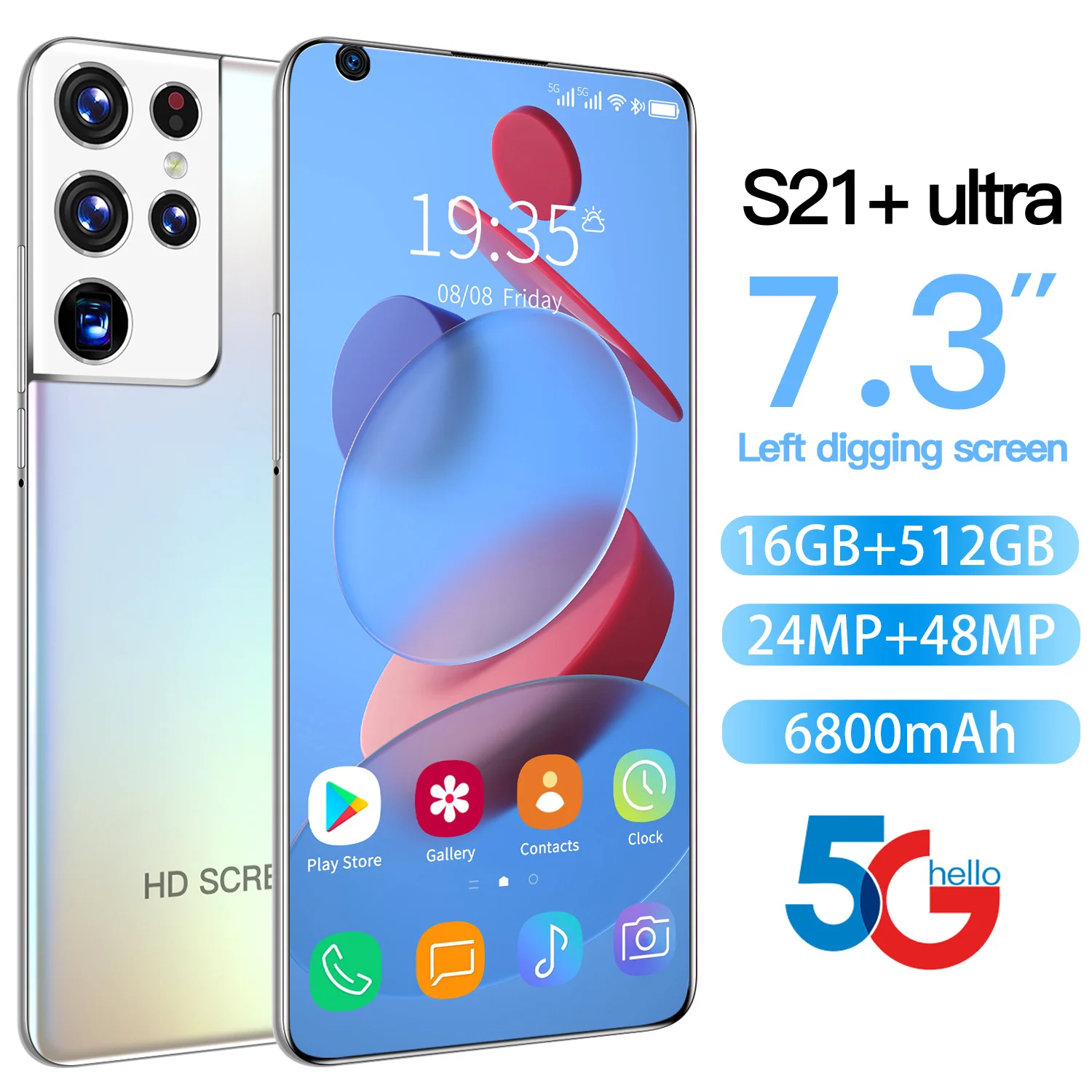 Смартфон S21, Android 10,0, 16 ГБ ОЗУ 512 Гб ПЗУ, 7,3 дюйма, две Sim-карты