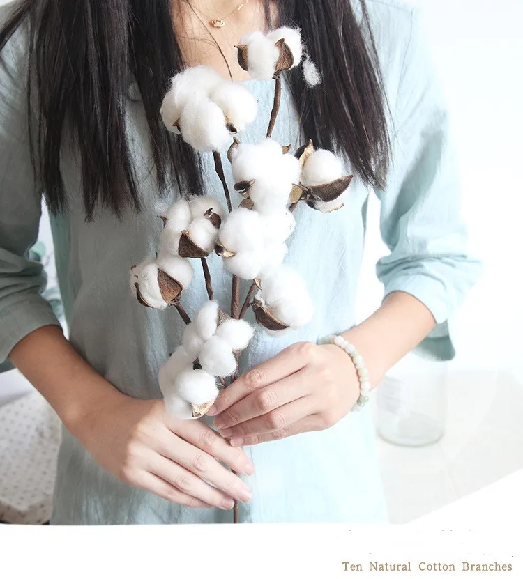 10 головок, натуральный сушеный хлопок, цветок, искусственные растения, Цветочная ветка