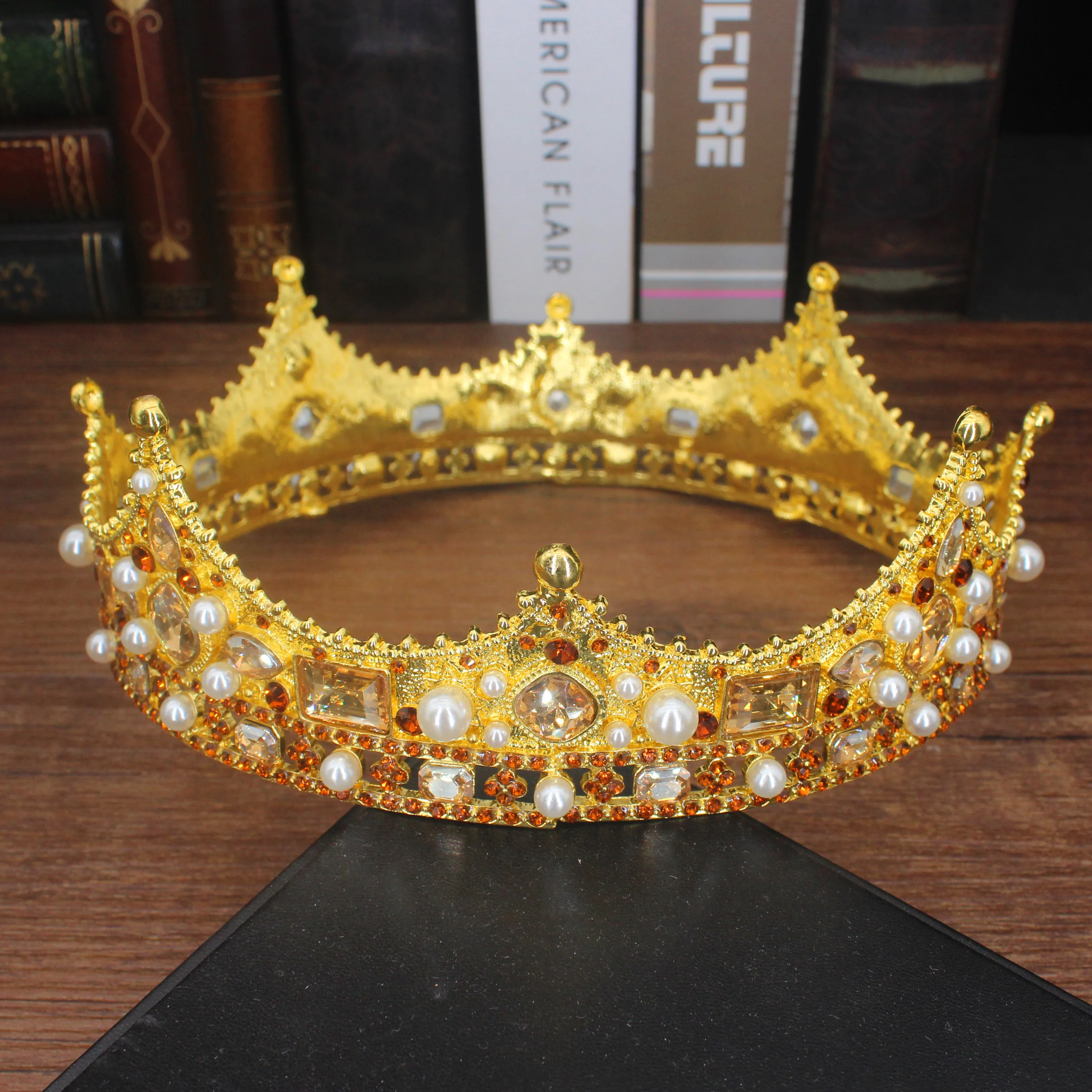 Роскошная жемчужная свадебная корона в стиле барокко, 3 стиля, женская свадебная корона, винтажная Круглая Большая Металлическая тиара и корона невесты