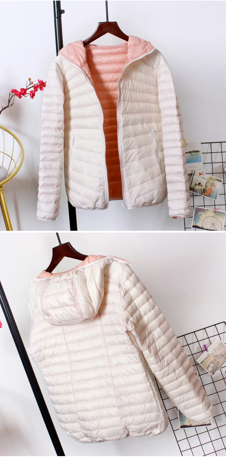 3XL 4XL женский пуховик, ультра-светильник, женские пуховики с перьями, Двухсторонняя ветровка, Реверсивный светильник, пальто, парки