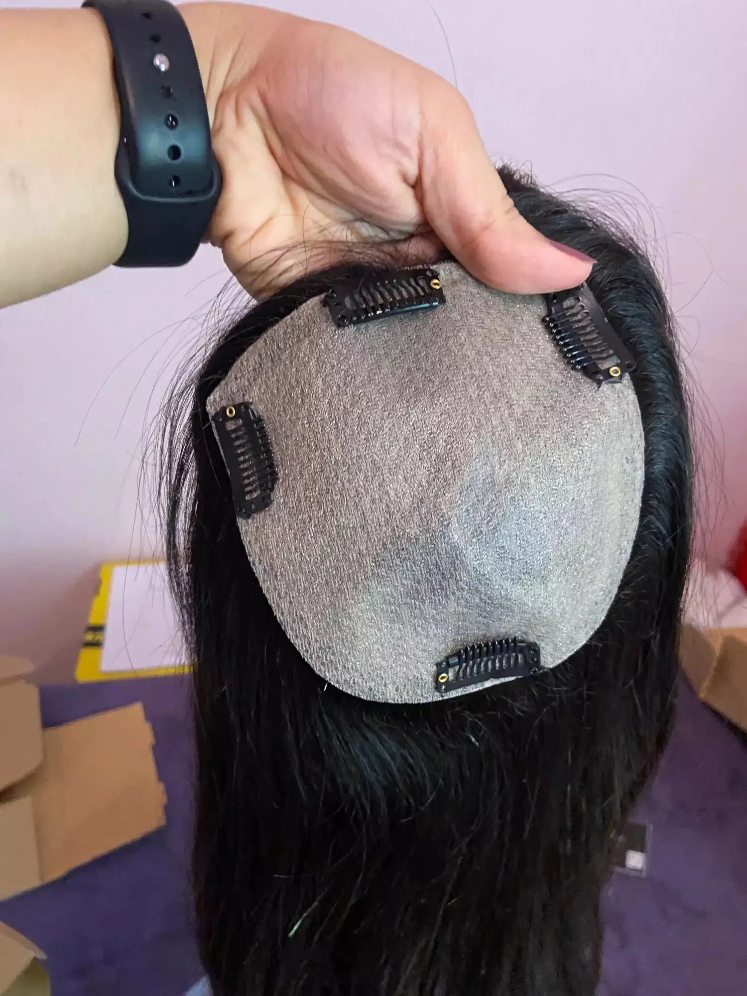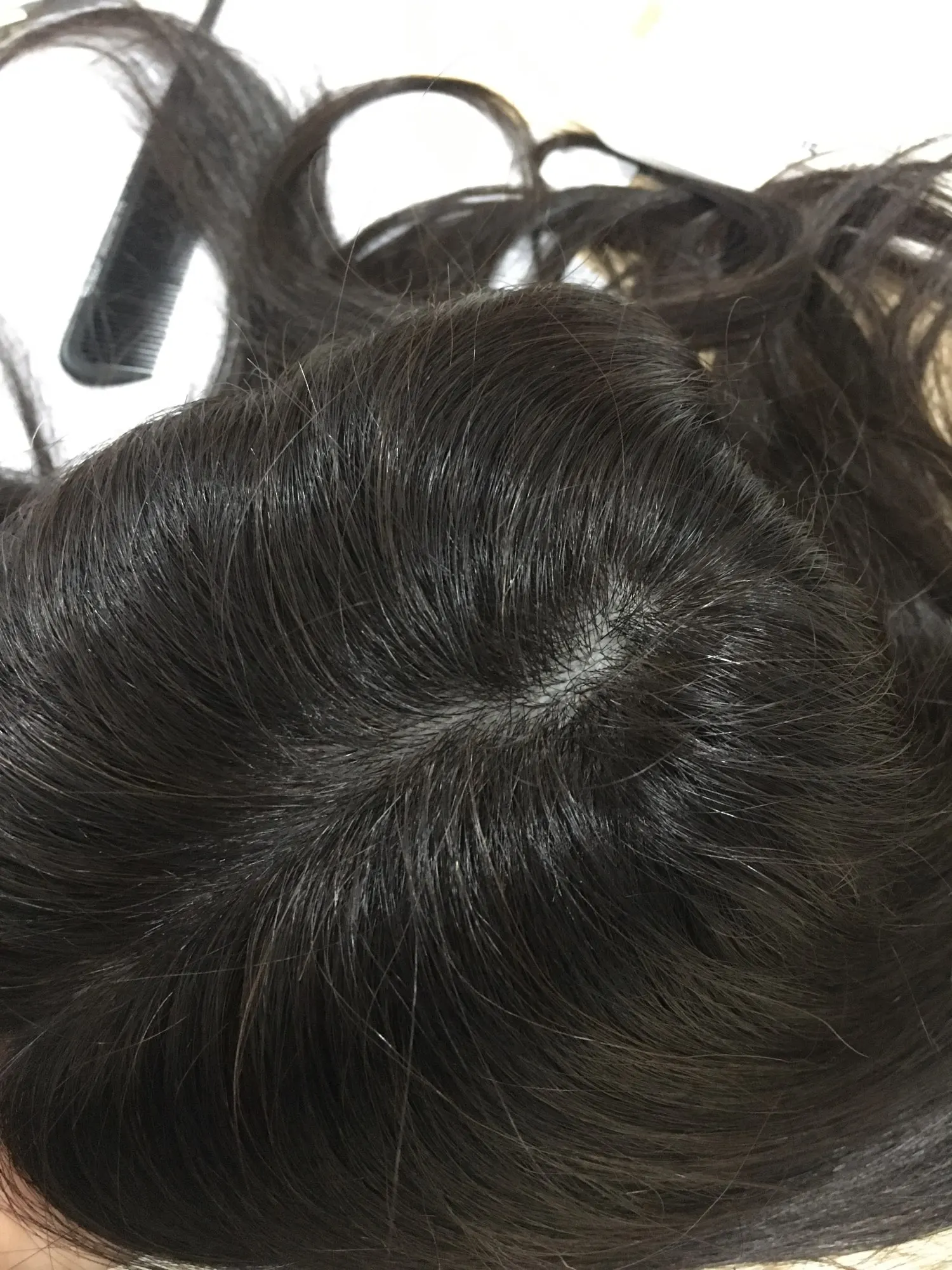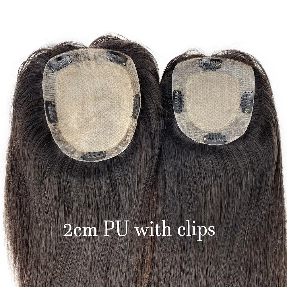 Европейские человеческие волосы 15x15 см, Топпер на шелковой основе, парик с 2 см искусственной кожей, около 5 зажимов, натуральные волосы для наращивания для женщин с тонкими волосами