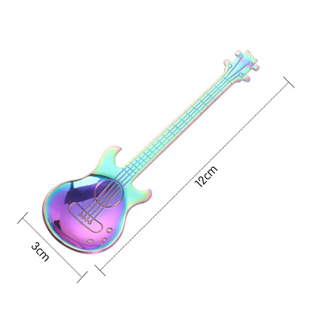 Гитарные ложки из нержавеющей стали, радужная кофейная и чайная ложка, столовые приборы, инструменты для питья