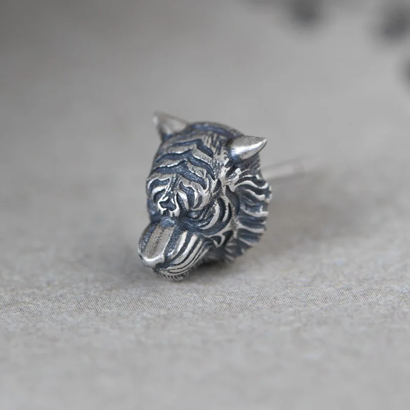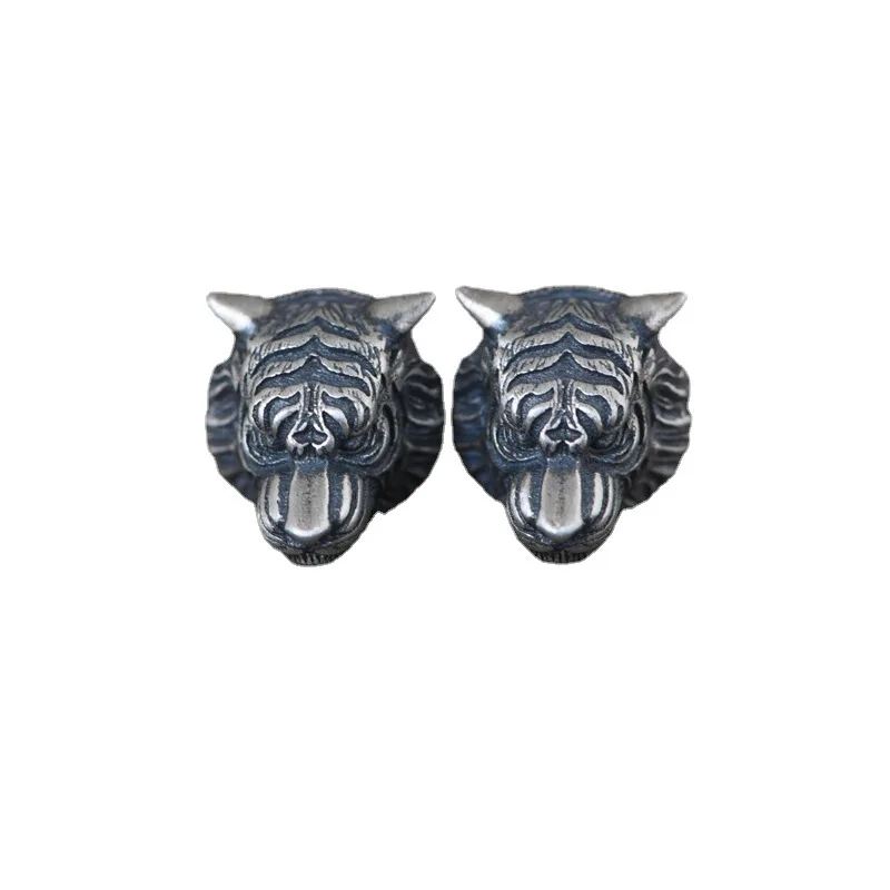 Винтажные готические Серебряные Матовые металлические серьги с тигр...