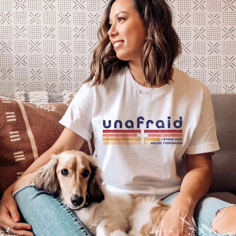 Женская футболка не боюсь, что я знаю, кто проводит завтра, Женский Топ, женская одежда в христианском стиле, эстетическая религиозная футболка с круглым вырезом, Прямая поставка